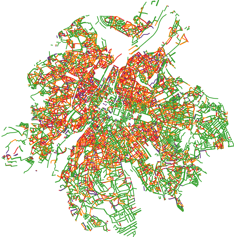 This dataset corresponds to the total occupancy rate of parking demand in 2014 by the different modes of transport (cars and vans, motorised two-wheelers, lorries, other) on all the roads in the Brussels-Capital Region.